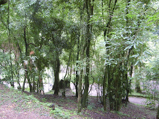 Depois do almoço nababesco, entramos nas trilhas do Parque, perfeitas para seres sedentários como eu. A paisagem é bucólica, mas as trilhas são curtinhas e fáceis de percorrer, assim a gente tem a sensação de estar bancando o desbravador de florestas sem se esfalfar! E até fica com a impressão de estar queimando as mlhares de calorias recém-adquiridas....